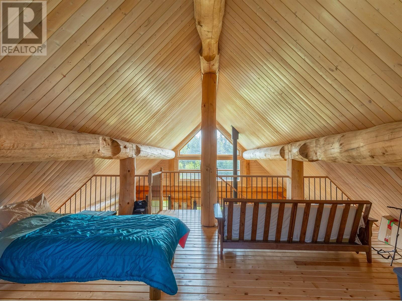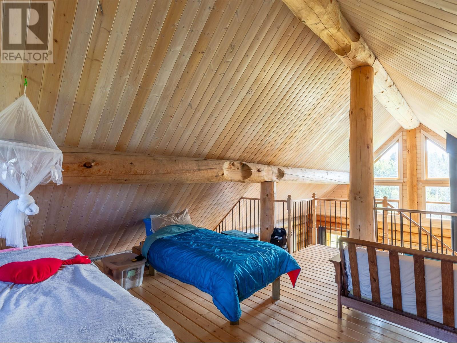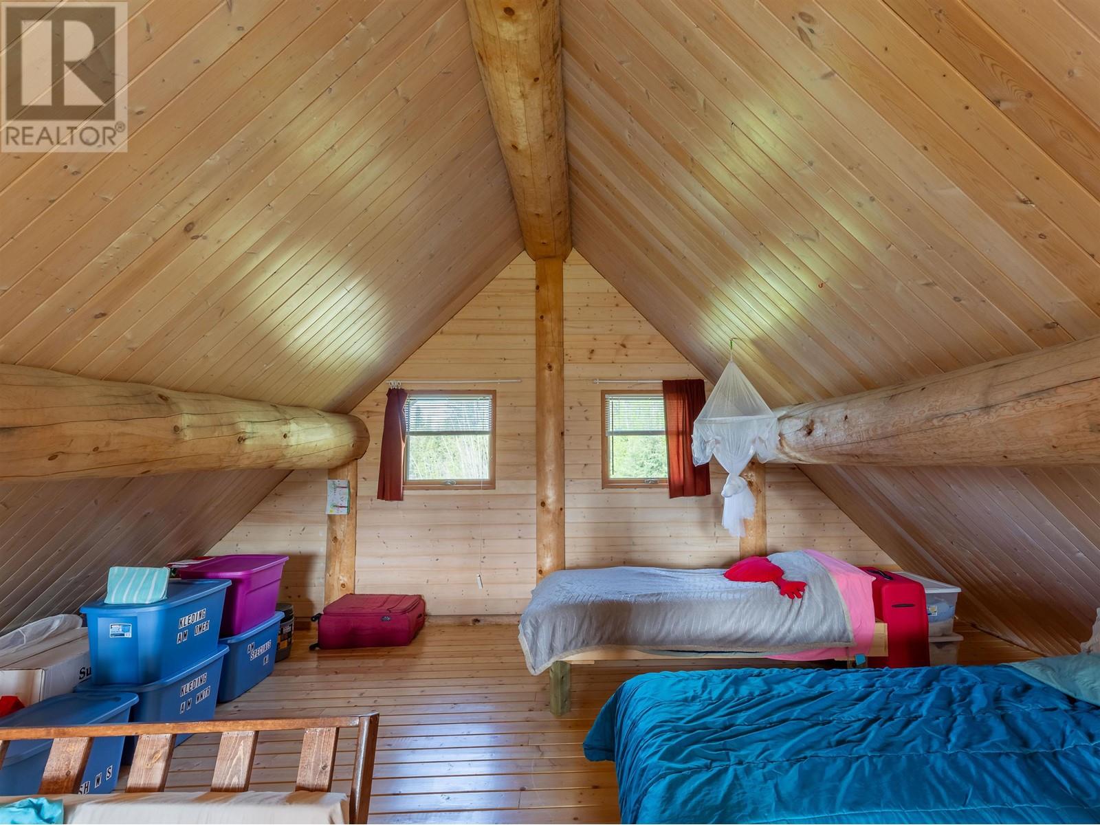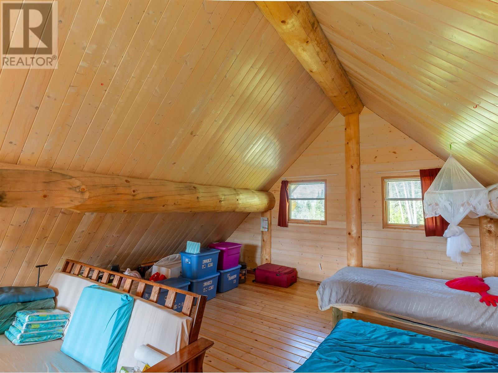 Log house (Harrison Log Homes) with a 1/2 storey sleeping loft on a quarter section of private land. Located just past the top of Woodmere Road in the a beautiful and quiet setting in the forest. Legal access through adjacent property (via easement), or through crown land. This charming home is powered by solar and heated with a WETT certified woodstove. Water is supplied with a 2,500 gallon cistern with rain collection from the metal roof. There's a lagoon in place, although it's not currently connected. Current sewer is a composting toilet. Fenced yard area surrounding the dwelling with a 7' x 10' storage shed. If you've been dreaming of living off-grid in the middle of nature, this is your opportunity! Use year-round with some adjustments to the solar, water and sewer systems. (id:4069)