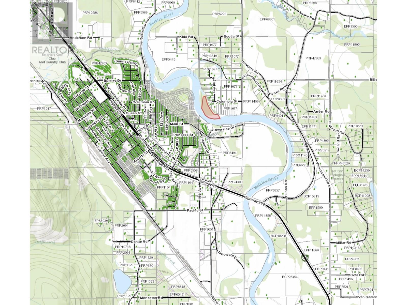 * PREC - Personal Real Estate Corporation. Enjoy your own private island on the Bulkley River, just minutes from Smithers. 12.36 acres, located at the end of Columbia Street. Property is treed and has access off Columbia Street. Buyers will be responsible for looking into building and development restrictions with the Regional District of Bulkley Nechako. Very cool property and a great opportunity to own river frontage on the Bulkley River! (id:4069)
