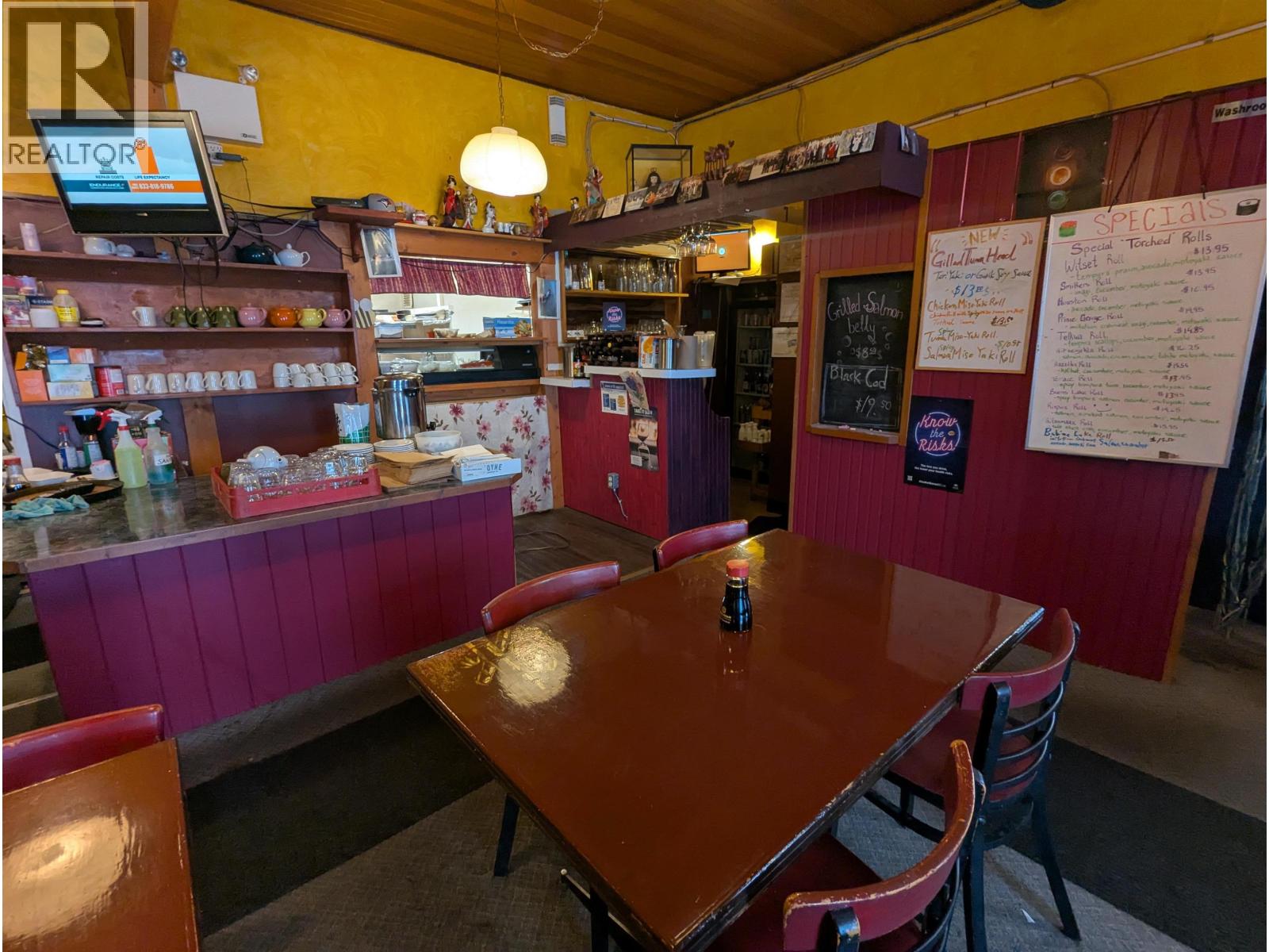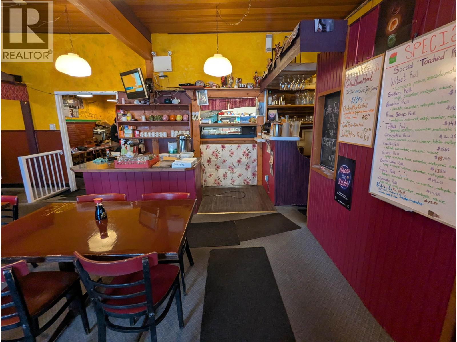 Business Opportunity - Masa Yama Japanese Restaurant (Business Only). An exceptional opportunity to acquire a well-established and profitable restaurant in the heart of downtown Smithers, BC. Masa Yama Japanese Restaurant is a fully licensed 52-seat dining establishment that has been successfully operating in the same Main Street location for over 16 years. This share sale includes the reputable business name, proven menu, and all equipment, fixtures, and leasehold improvements-everything you need to seamlessly take over and continue operations. With a strong local following and consistent revenue, this turn-key business is ideal for an owner-operator or investor looking to enter or expand in the food service industry. Full lease details and financial statements available upon request. (id:4069)