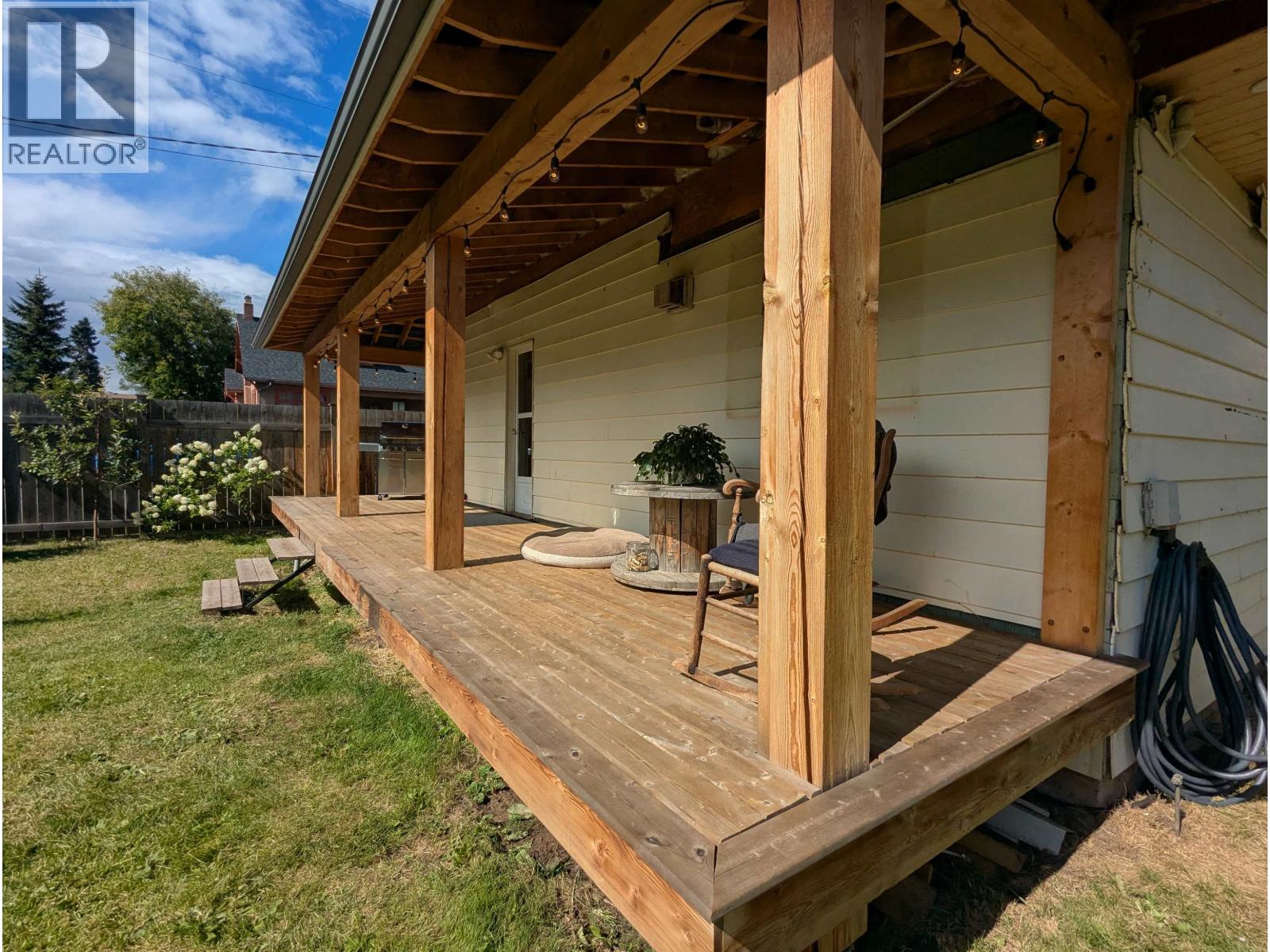 4 Bed 3 Bath heritage home located in the heart of Smithers. Zoned C-1A this property has one of the most flexible zonings in Smithers. Allowed uses include residential and/or commercial (retail, office, studio, child care center, etc). This classically designed two-storey foursquare style home known in Smithers as the 'Hoskin's House' has been lovingly maintained and thoughtfully updated over the past century. The inside has an open layout with 9 foot ceilings, original fir floors, & a charming bay window. Lots of original character to appreciate with trim details, wainscotting, and hardware. New updates include: triple pane windows upstairs, truss reinforcement & blown-in insulation, metal roof, & covered back deck. Set on a 100x125 ft corner lot with a newly fenced yard, greenhouse, & wired shed. There are also fruit trees & bushes, raised beds, and firepit. The home and property provide great potential to be office space or retail. Property also has great potential to be subdivided. See MLS R3034883 (id:4069)