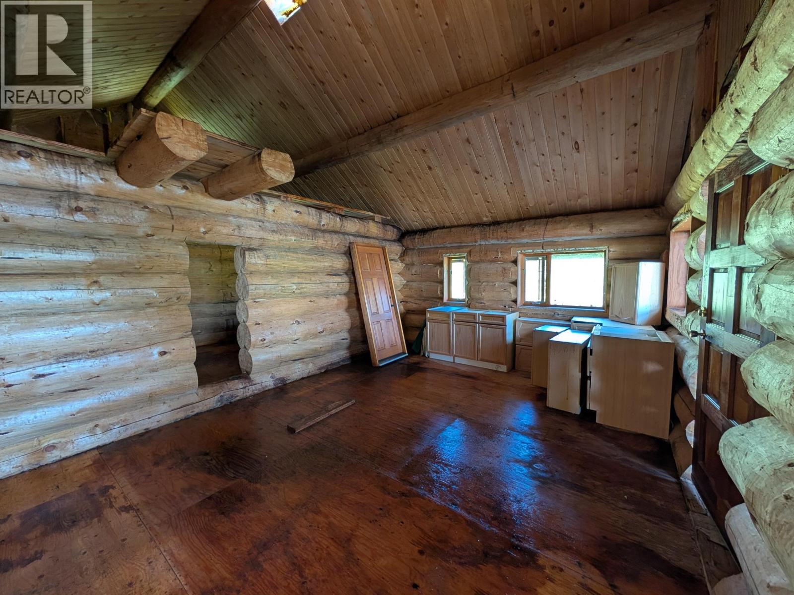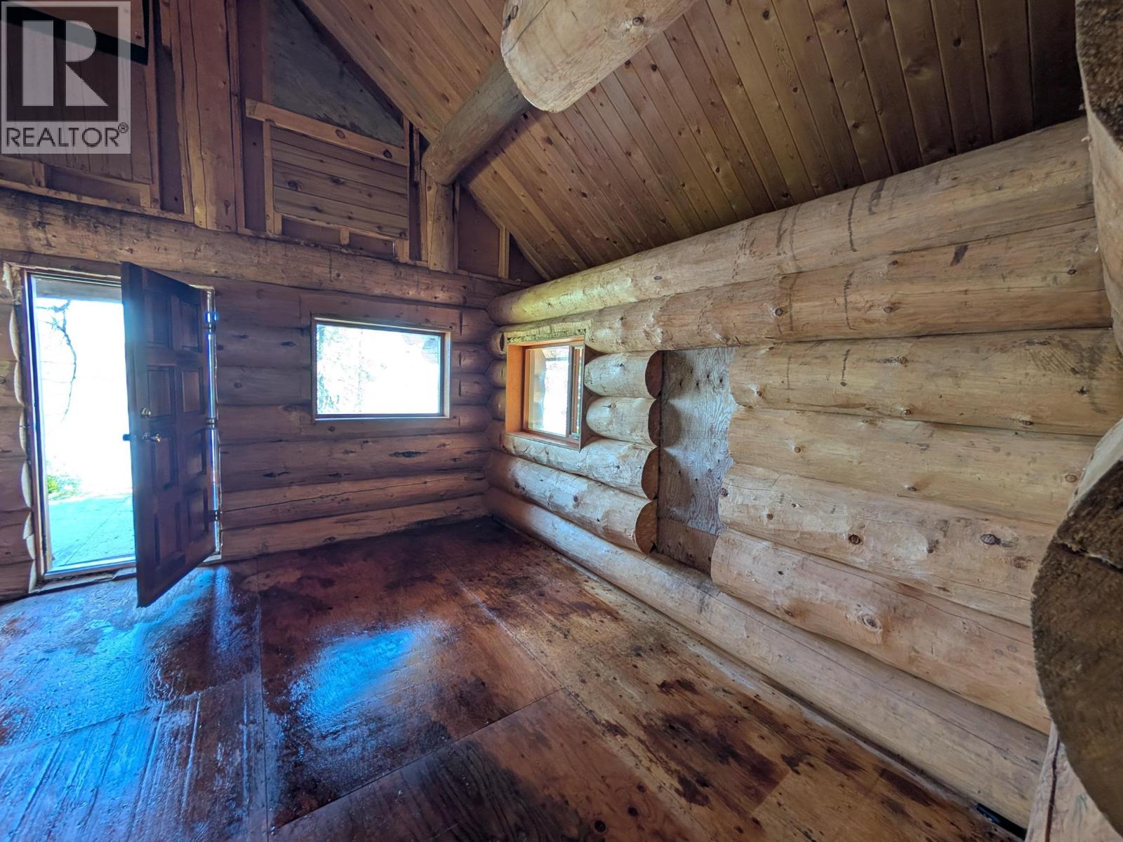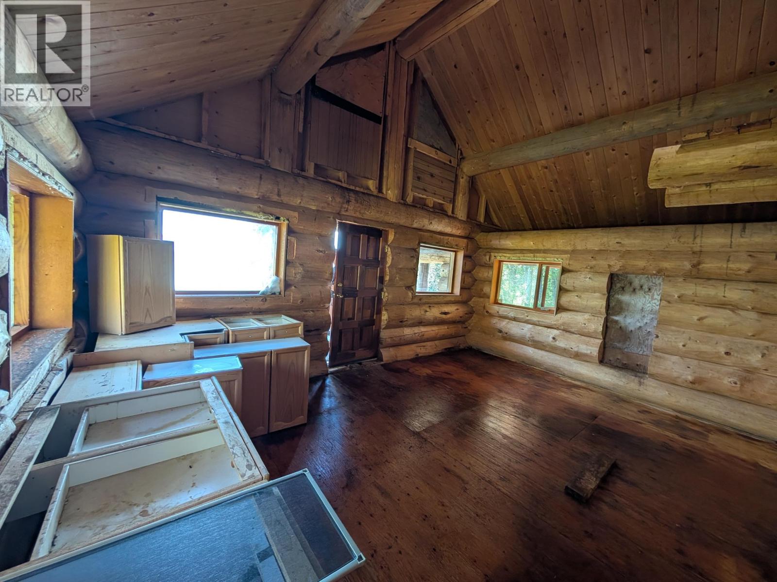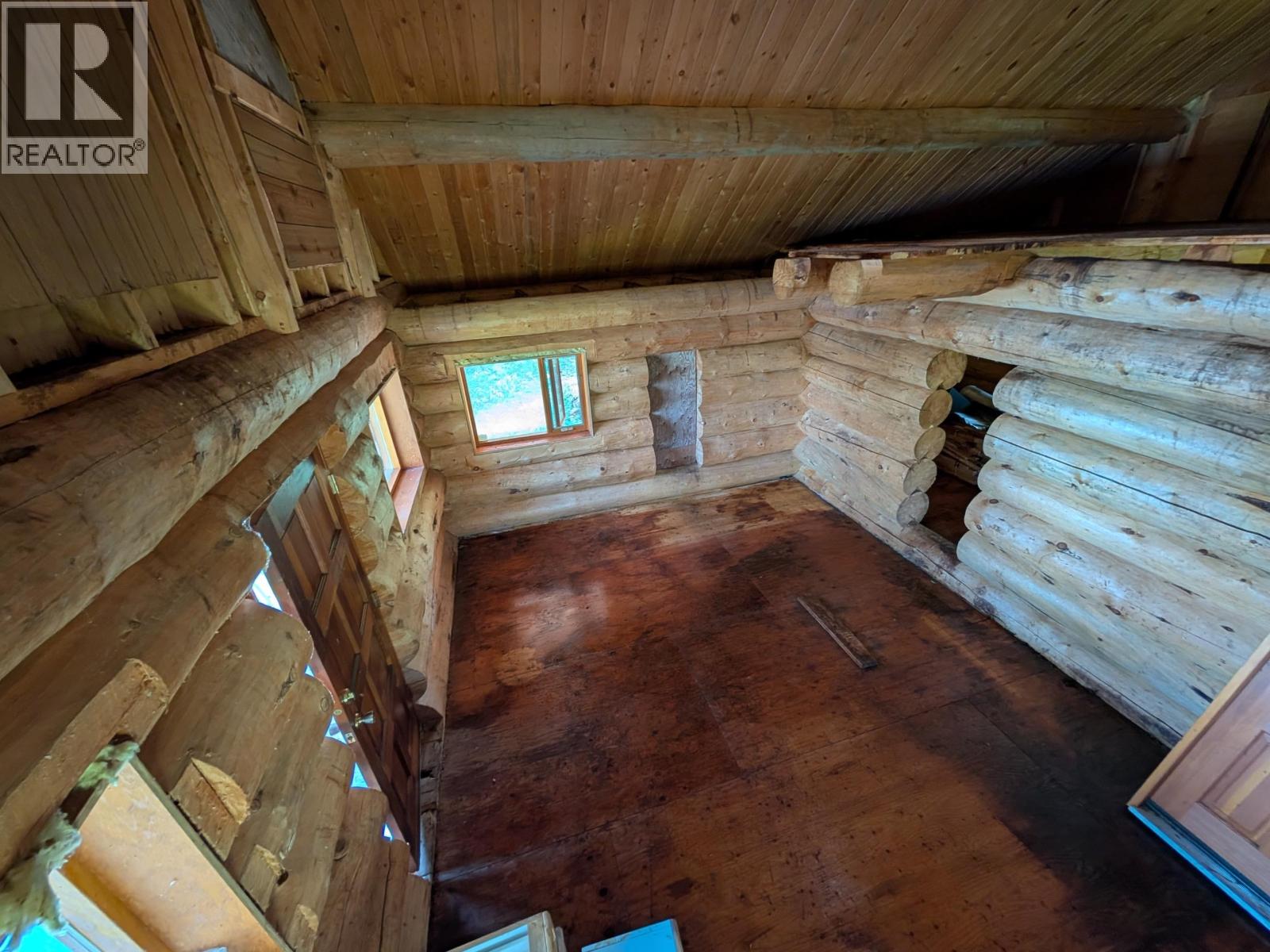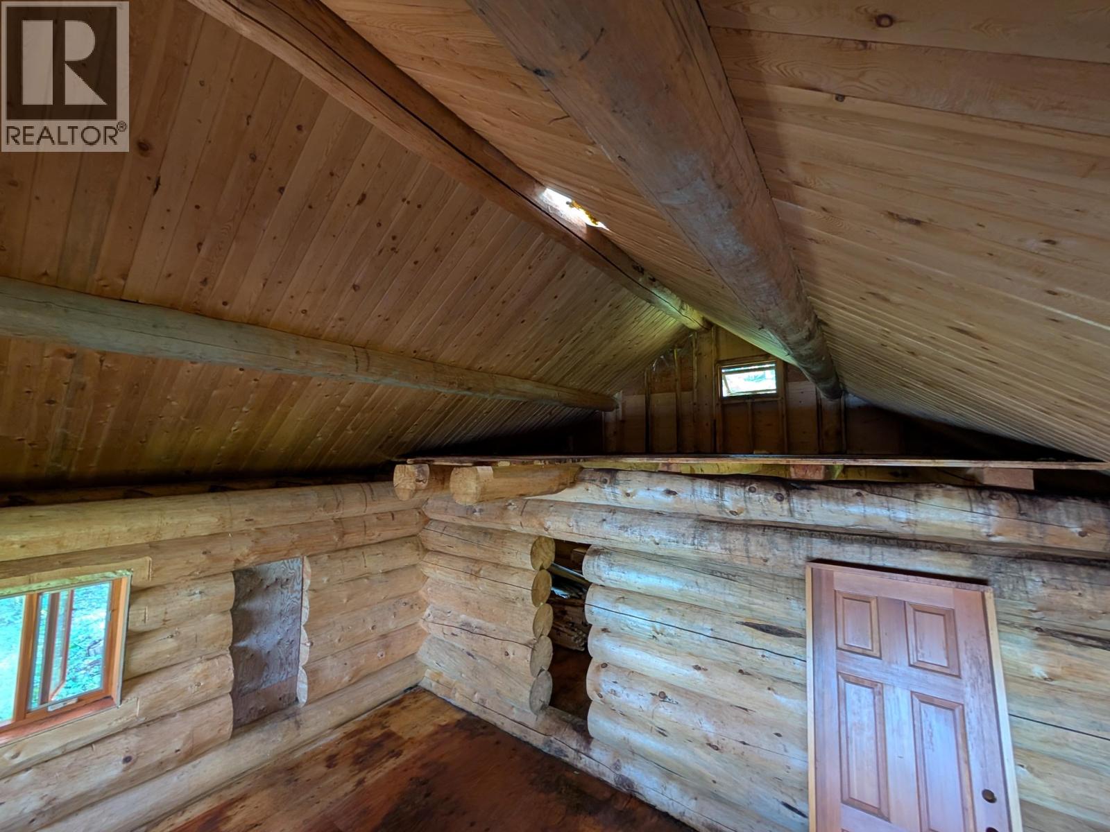 Truly spectacular location at "4 Mile" on Babine Lake. This site is up for sale for the first time and the seller had a professionally built log cabin placed here approximately 18 years ago and hasn't been back to finish it. The pack rats have come so some cleaning and repair is needed but overall, the structure seems in good shape. The logs to build this cabin are huge! The vaulted ceiling and open loft add volume and character to this cabin. The kitchen cabinets are sitting on the floor ready to be installed and there is hardwood flooring in the bedroom that most likely can still be used for the main flooring. The cabin has a green metal roof and it's ready for the woodstove chimney to go in. The concrete Sono tubes have kept the cabin and free from rot. Make your move today! (id:4069)
