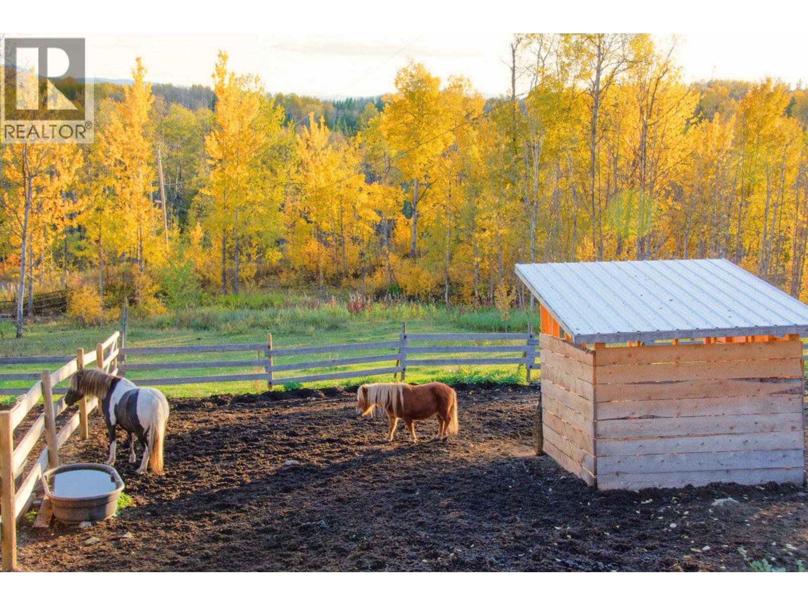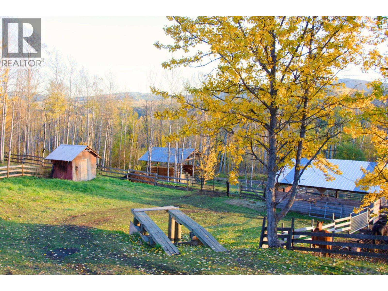 Very well-set-up 5-acre hobby farm just 15 minutes east of Houston, BC. This south-facing property offers exceptional sunlight, usability, & self-sufficiency potential. The property is entirely usable pasture, fully fenced & cross-fenced, ideal for horses/livestock. Multiple outbuildings include a 50'x30' open shop, hay shed, animal shelters, storage sheds, green house & walk-in meat cooler. 2 outdoor hydrants, oil change ramp, fenced yard around house, raised garden beds, fruit trees. Large south facing sundeck w/ beautiful mountain views. Inside, the layout is practical and inviting, centered around a wood-burning stove in the livingroom w/ vaulted ceilings. Primary bdrm/3 pc bath on main. 2 bdrms/ bath above. The unfinished walk-out bsmt offers room to grow. Good drilled well, 200 amp. (id:4069)
