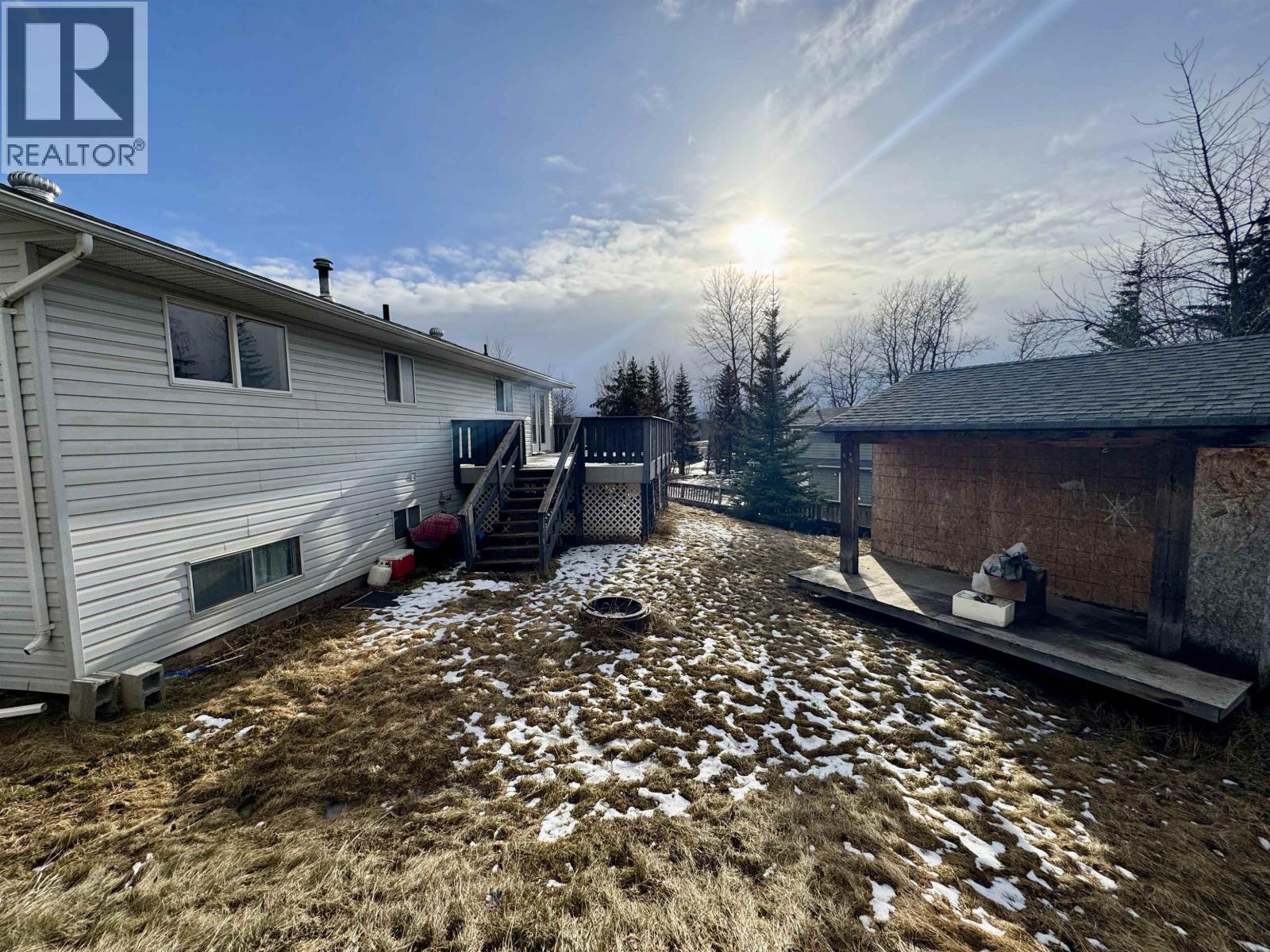 Affordable family home! The main level features a bright kitchen with solid wood cabinets, along with an attached dining area that opens onto the 24’ x 13’ deck. The spacious living room is filled with natural light from a large front window. Down the hallway, you’ll find three bedrooms and a full bathroom. Downstairs offers a huge rec room, an additional bedroom, a partial kitchen, laundry area, and a separate entrance—providing great flexibility. Outside, there is a large front yard, gravel parking beside the home, a partially fenced yard, and a 16’ x 12’ insulated workshop with an attached 16’ x 5’ wing. (id:4069)